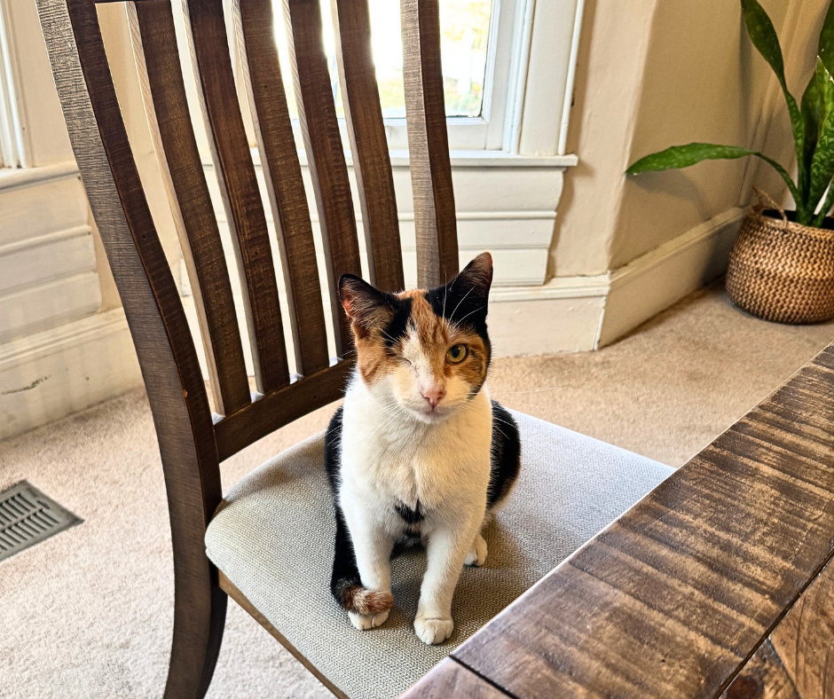 The kitchen wakes up slowly. Coffee brews. The oven hums. And sometimes, when there are no guests at the table, Fancy claims a seat of her own.